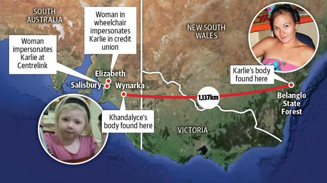 In 2010 the skeletal remains of Karlie Pearce-Stevenson were discovered in the Belanglo State Forest, on Australia’s eastern side. Then, in July 2015, the remains of her daughter Khandalyce ‘Candy’ Pearce were discovered alongside a remote outback highway near Wynarka, South Australia, over 1,000km from her mother in Belanglo State Forest.